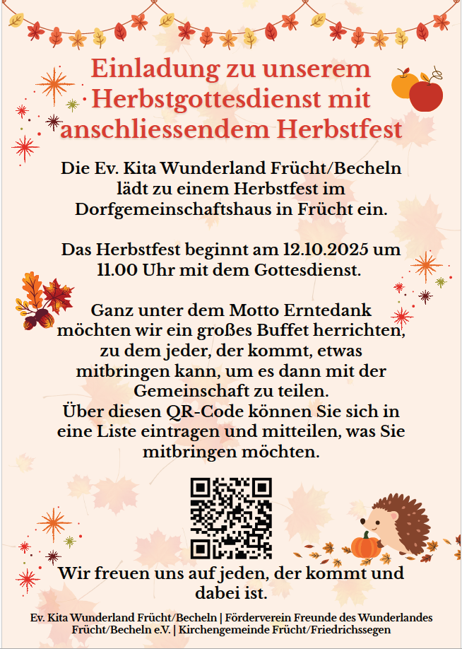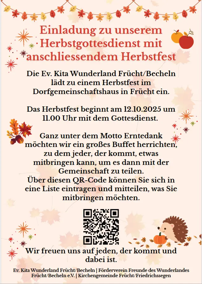 Einladung zum Herbstgottesdienst und Herbstfest der Kita Wunderland
