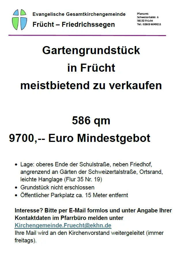 Wir begrüßen Sie auf der Internetseite der Ev. Gesamtkirchengemeinde Frücht-Friedrichssegen. Neben evangelischen Einwohnern aus Frücht und Friedrichssegen gehören auch die Menschen aus den Orten Nievern und Miellen zur Gemeinde. Wir sind ökumenisch offen und freuen uns, wenn Menschen anderer Konfessionen und Religionen mit uns ins Gespräch kommen.